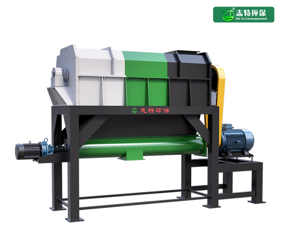 v處理量大,處理前不用篩選雜質:餐廚垃圾自進料口進入破碎腔后,通過內部高速旋轉的重型破碎錘將餐廚垃圾破碎粉碎,其中生鮮果蔬尾菜等脆性垃圾被快速破碎后從尾菜出料口落下,石塊及其他雜質從雜質出料口落下,完成餐廚垃圾的破碎分選,該設備轉速高,處理量大。